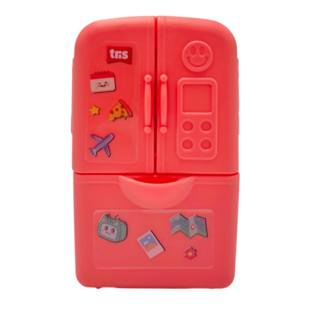 O Apontador Duplo e Borracha Frost Free é a união perfeita de praticidade e diversão para a sua rotina escolar. Em formato lúdico e fofo de mini geladeira, traz consigo um design diferenciado que encanta, além de ser extremamente funcional.