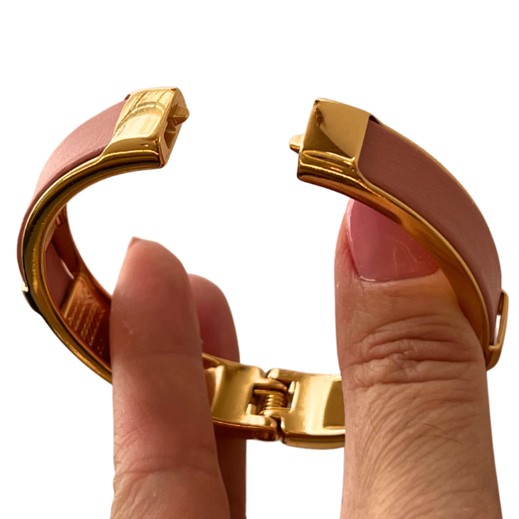 Lindíssimo bracelete com banho dourado e couro, em 4 cores. Fácil de colocar e tirar, confortável e estiloso.