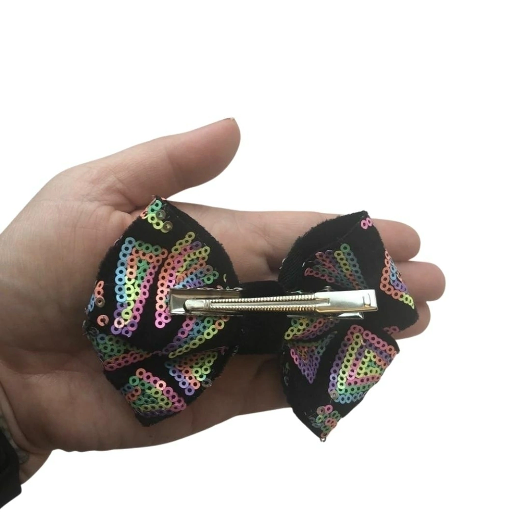 Lindo hair clip com laço em fita de veludo bordada, para dar um toque especial no look das maiorzinhas.