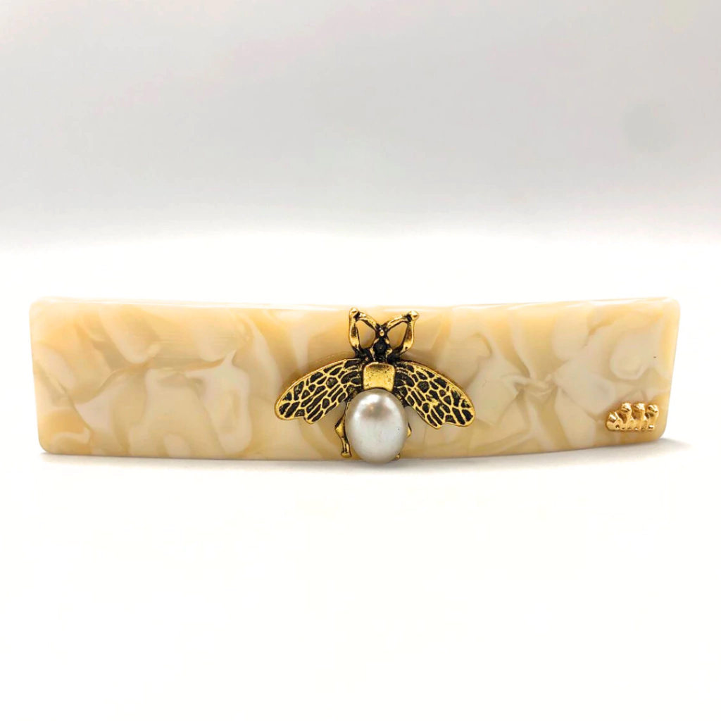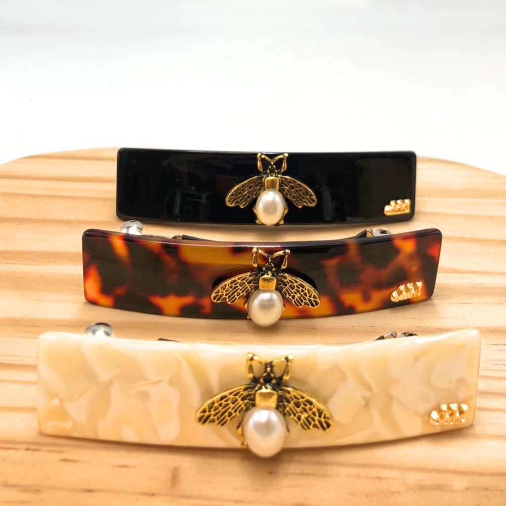 Presilhas super resistentes e sofisticadas, com aplicação de abelhas e pérolas.